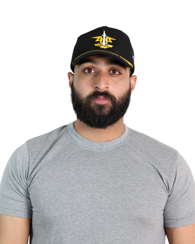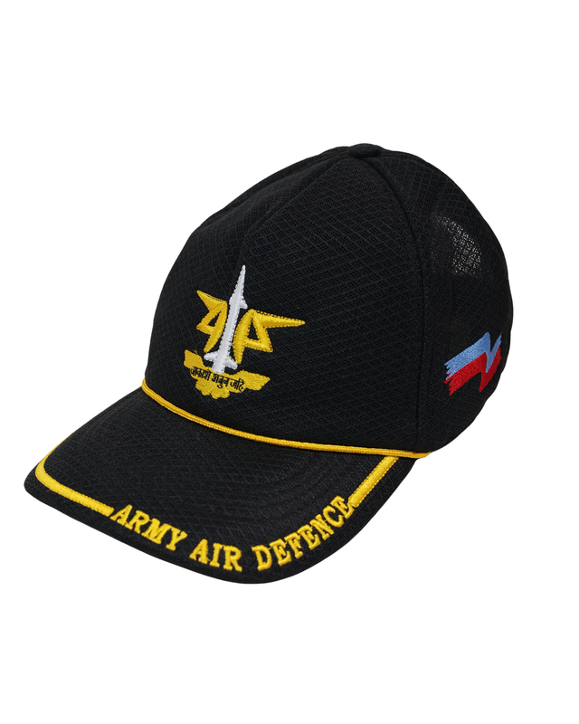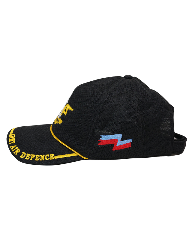 Black netted cap featuring Army Air Defence embroidery — stylish and comfortable.