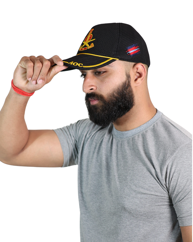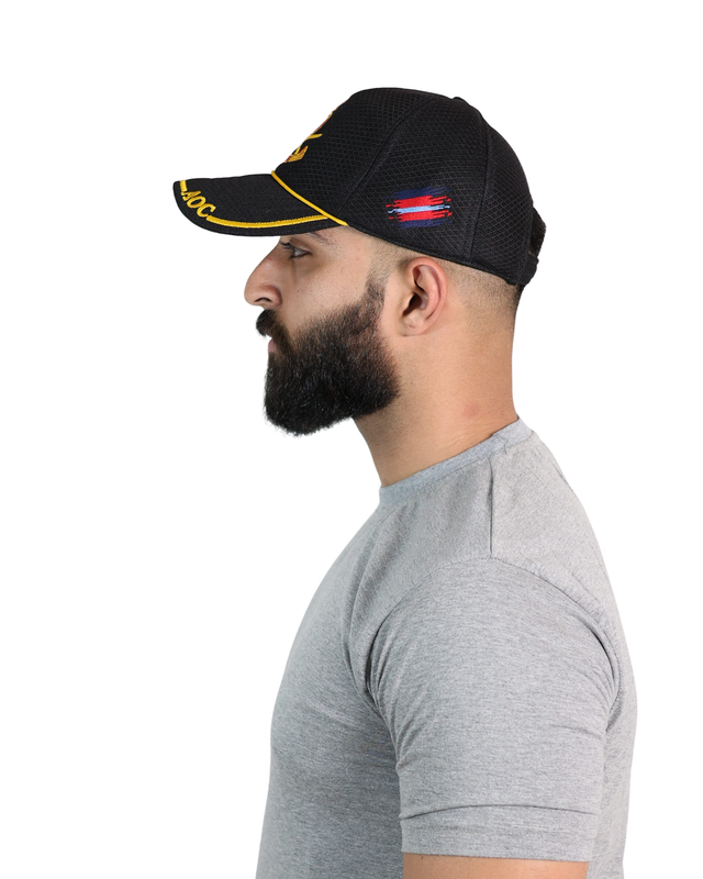 Black net cap featuring AOC embroidered logo — stylish representation of logistics and support.