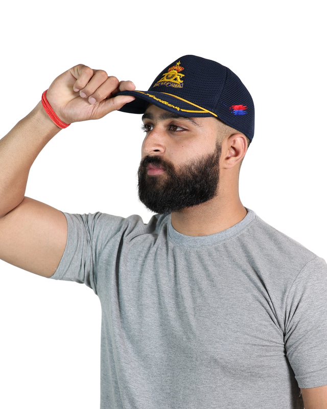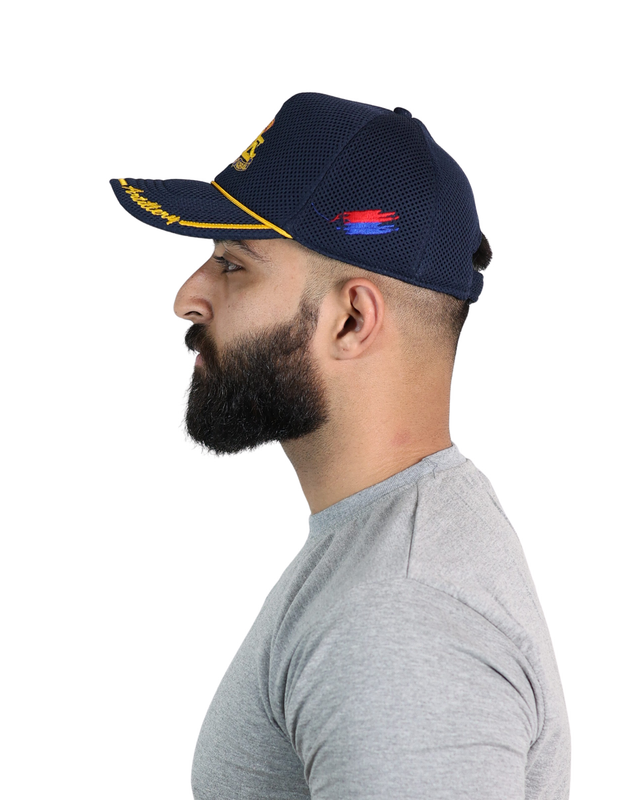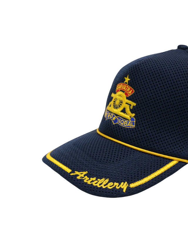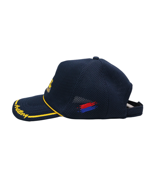 Blue mesh cap with Indian Artillery embroidered insignia — durable and lightweight.