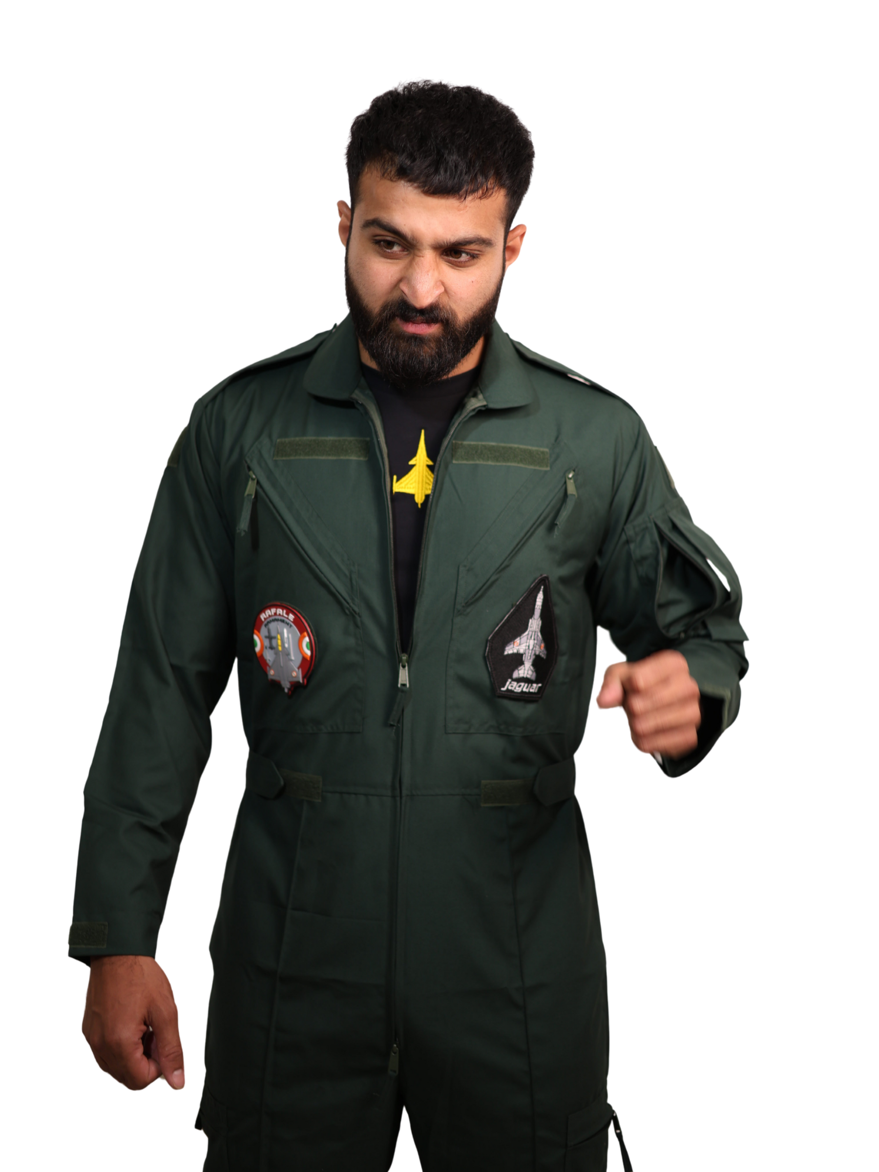 Step into the cockpit with the Alpha Aviator – Pilot Flight Suit, a full-body military-style jumpsuit inspired by the uniforms of India’s elite Air Force pilots. Designed in combat green, this suit merges form and function with tactical zipper detailing, adjustable cuffs, and a streamlined silhouette that channels high-altitude energy into everyday style.