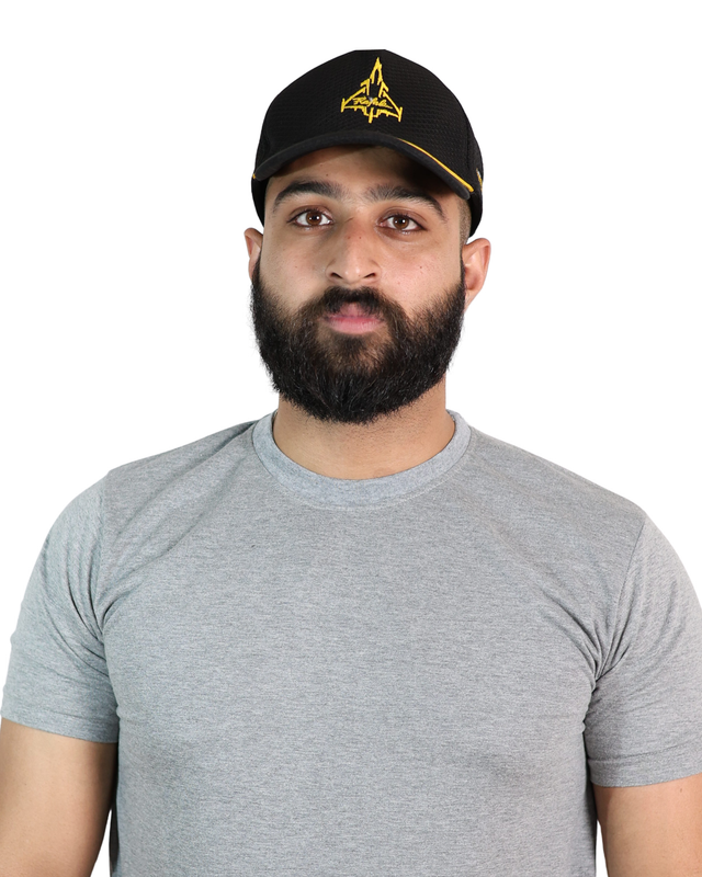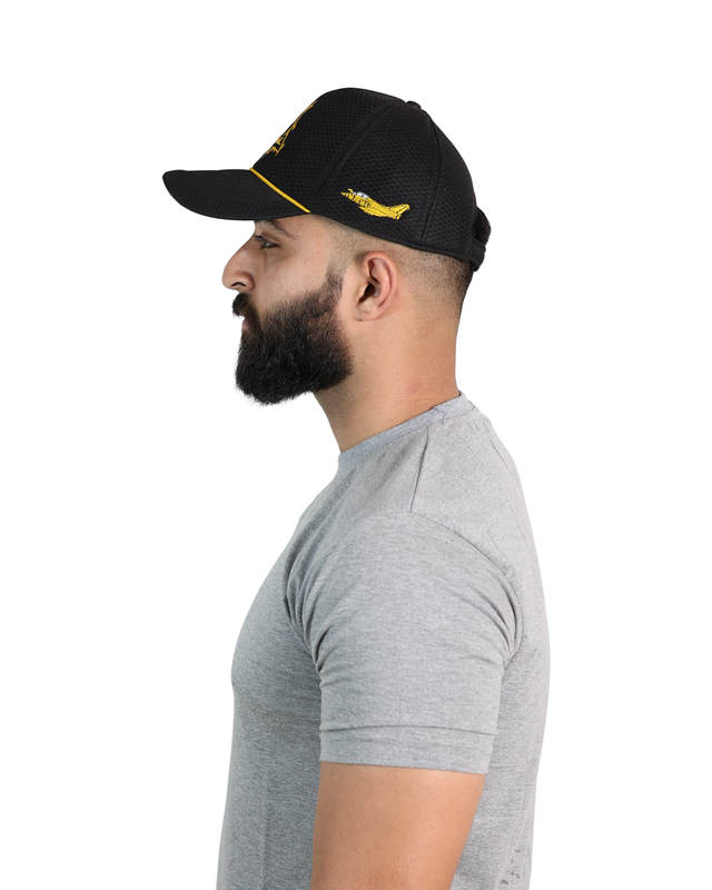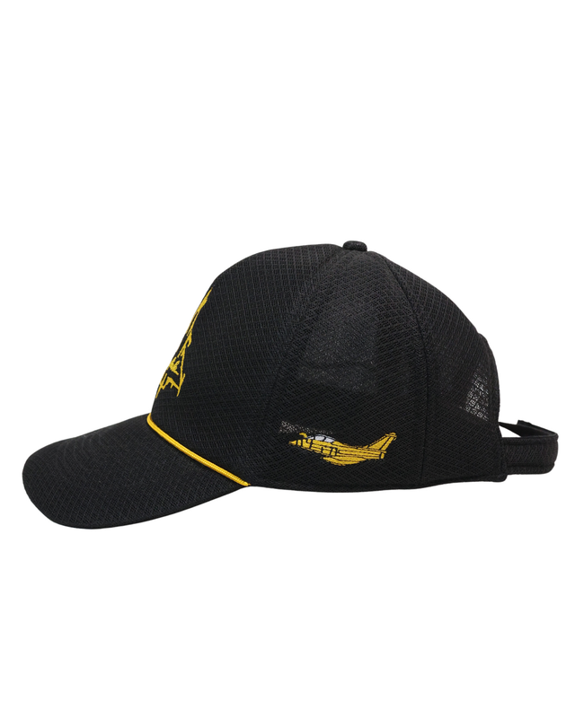 Breathable black mesh cap with embroidered Rafale logo — adjustable fit and aviation appeal.