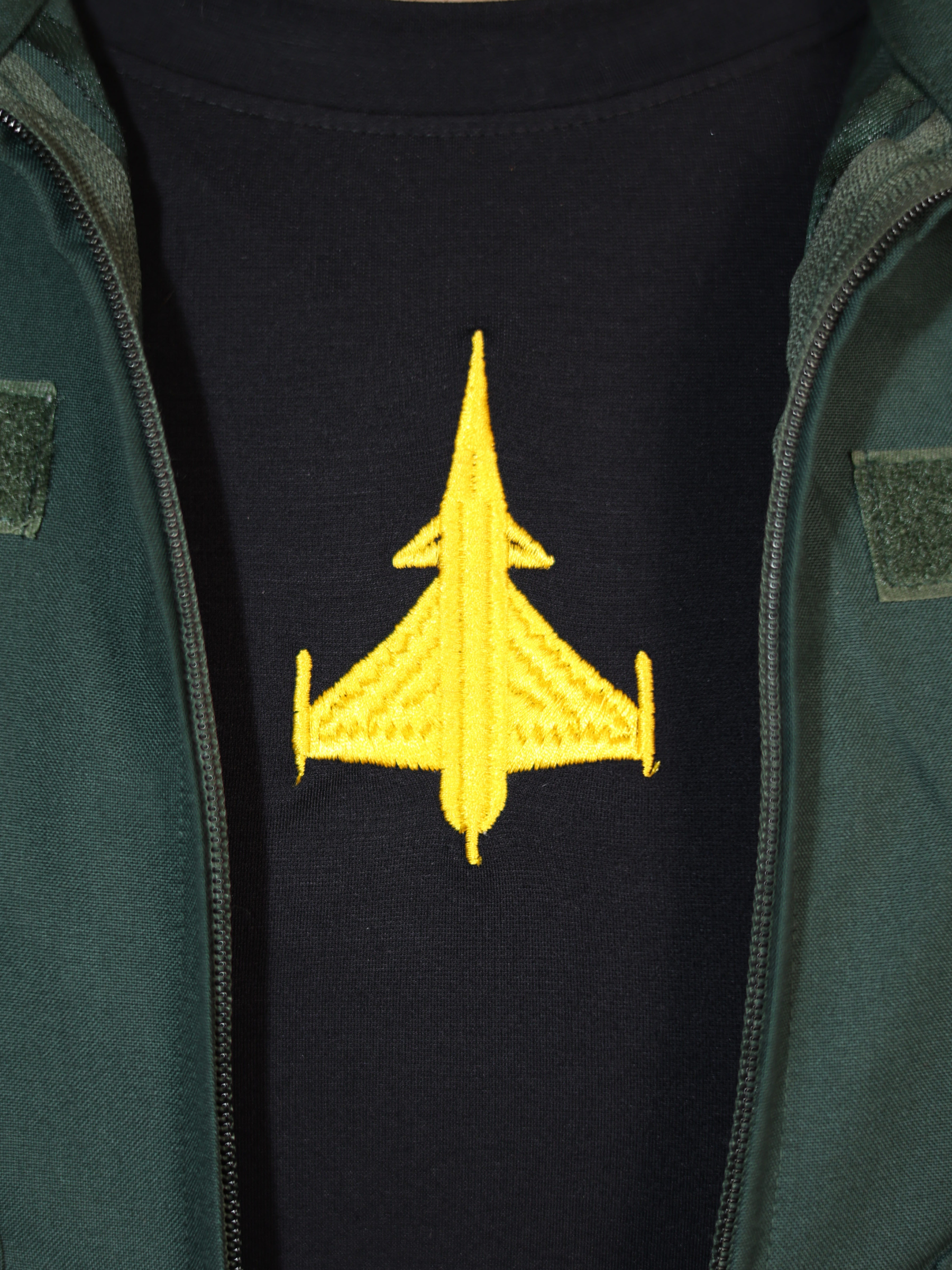 Rafale T-shirt Round Neck half sleeve cotton with embroidery aircraft on neck