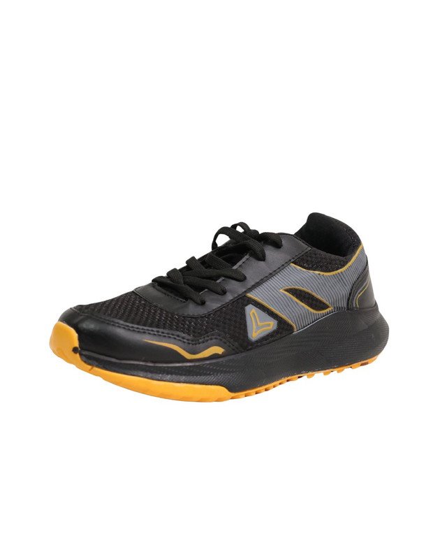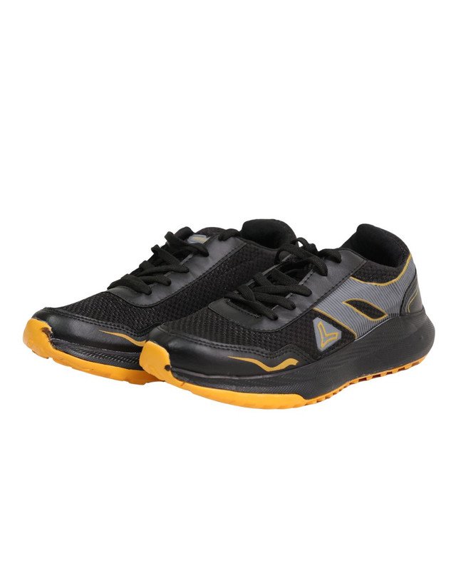 A sleek and versatile pair of black sports shoes providing great support, ideal for gym, running, or casual outings.