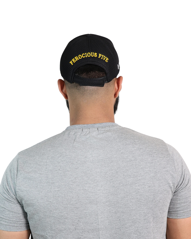 Black net cap with 5 Squadron “Tuskers” embroidery — celebrates IAF legacy unit.